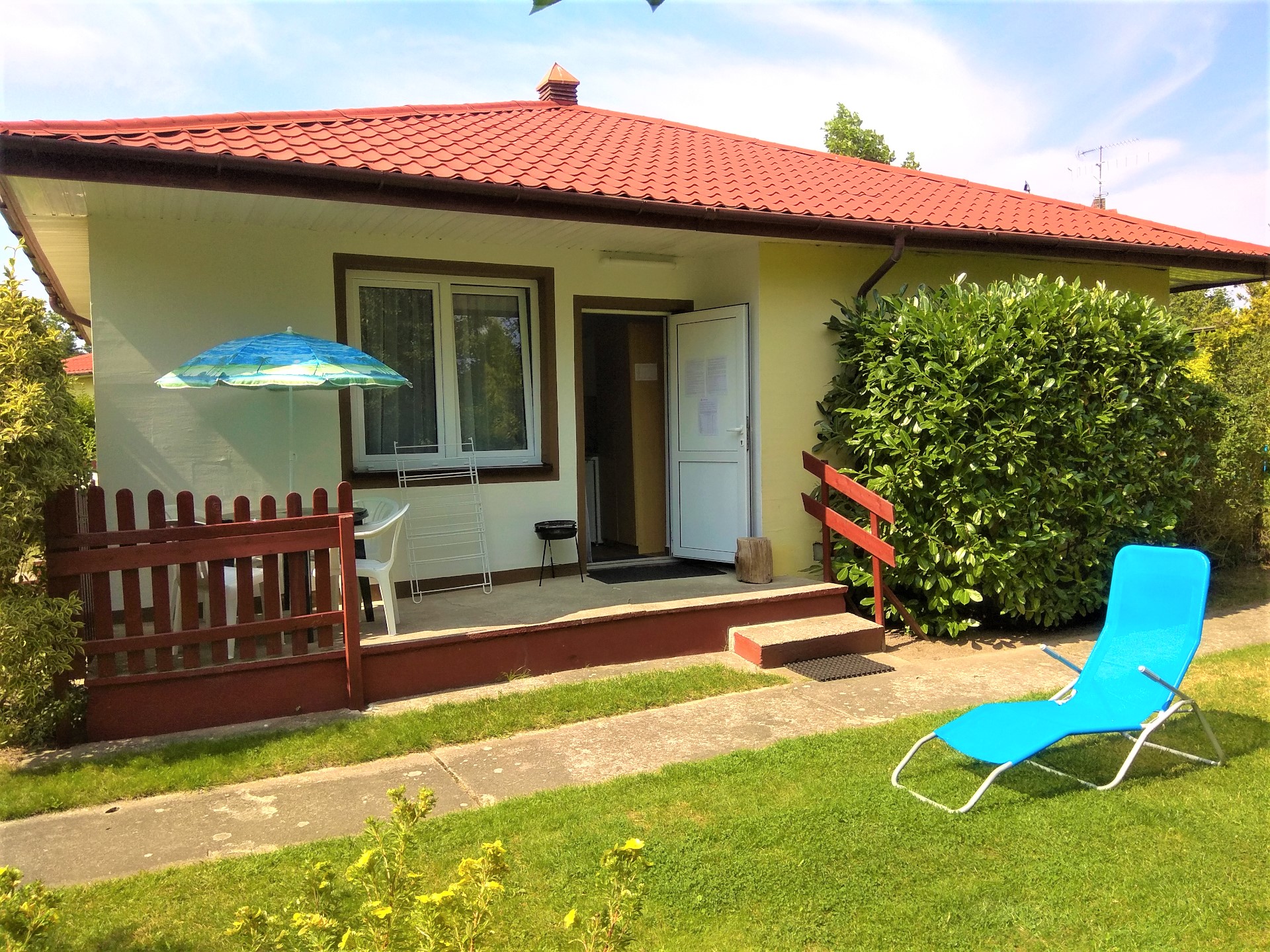 Domki tej wielkości składają się z jednego pomieszczenia i zajmują powierzchnię około 16 m2. Wejście do domku prowadzi przez mały taras z meblami ogrodowymi, grillem, parasolem ogrodowym i suszarką balkonową. W pomieszczeniu znajdują się 2 wersalki dwuosobowe, rozkładane i jednoosobowy, rozkładany fotel do spania. Każdy taki domek posiada radio i 32 calowy telewizor, sprzęt plażowy (2 leżaki, koc na plażę, parawan), stół i krzesła, szafkę nocną i szafę na ubrania.